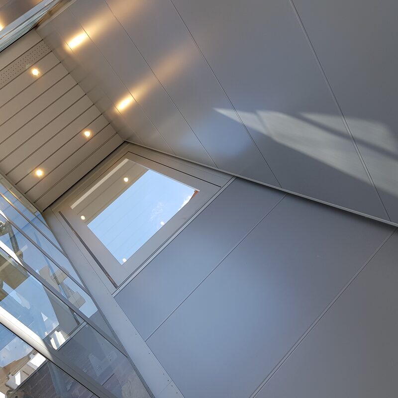 Zum Standard gehören Verbundglasscheiben und eine mehrschichtige Sandwichpaneele. Die Türen können auf jeder Etage als maximal drei rechts- und linksöffnende Türen installiert werden, wobei die Tür in der obersten Etage in Form von Toren gestaltet sein kann.