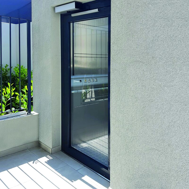 Die DomoFlex Plattformen werden standardmäßig mit verglasten Türen angeboten, die maximale Sicht und passive Sicherheit garantieren. Sie können auch mit einer Motorisierung ausgestattet werden, um ein automatisches Öffnen zu ermöglichen und das Betreten der Plattform einfacher zu machen. Durch eine spezielle Fernbedienung (optional) kann die Tür auch aus der Ferne komfortabel geöffnet werden.